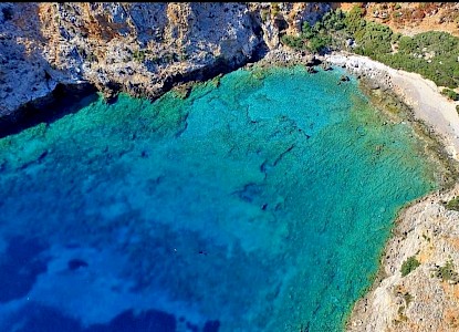 Our boat tour starts, by heading towards Spatha Cape on the Rodopou Peninsula, the northernmost point of Crete. Our rib, with its powerful engines, allows us to reach our first destination, the impressive Menies Bay, in about a half hour.